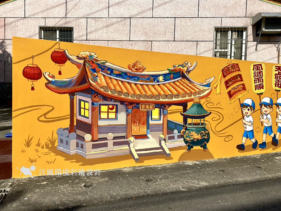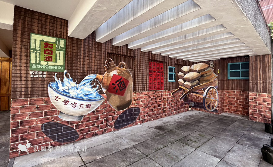 經過時間不斷的蛻變,在平面的牆上呈現立體的效果,或是利用場地的透視達到視覺欺騙