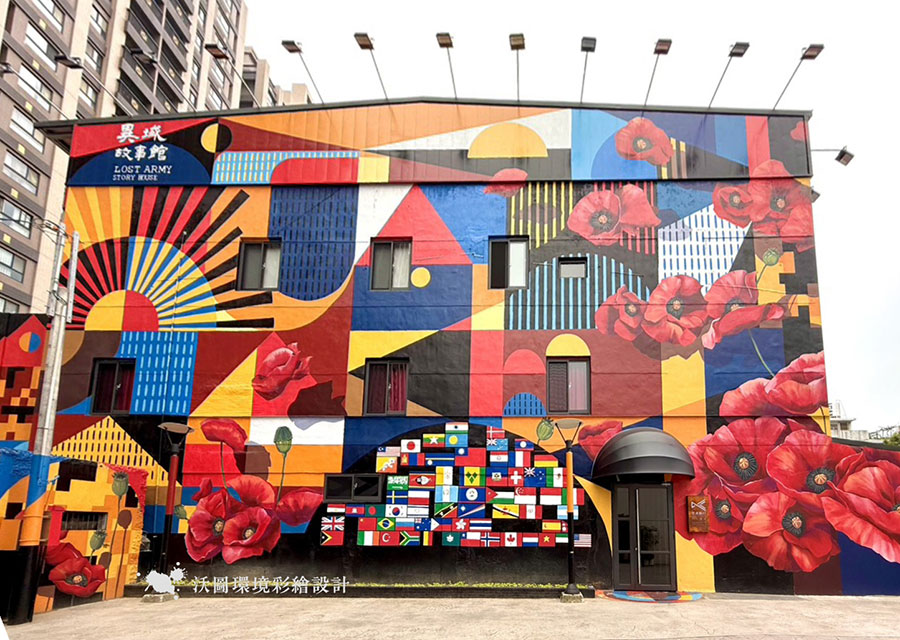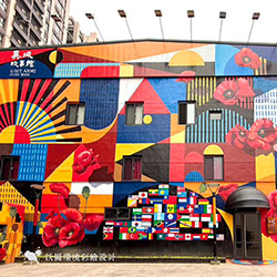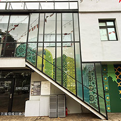 經過時間不斷的蛻變,在平面的牆上呈現立體的效果,或是利用場地的透視達到視覺欺騙